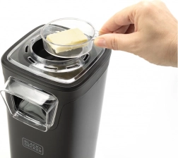 Součástí je multifunkční odměrka, se kterou snadno navážíte ideální porci a zároveň ji využijete k rozpuštění másla či přípravě polevy, zatímco přístroj pracuje. Díky kompaktnímu a snadno čistitelnému provedení se výrobník skvěle hodí do každé kuchyně.