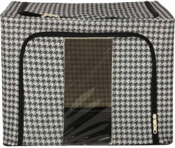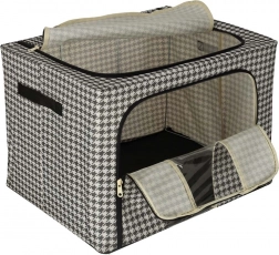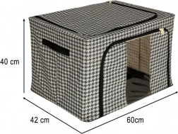 Praktické zipy a dvě přístupová místa usnadňují vkládání i vyjímání věcí bez nepořádku. Odolný textilní materiál z polyesteru se snadno udržuje a elegantní černo‑bílý pepito vzor se hodí do každého interiéru.