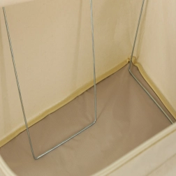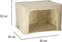 Vnitřní kovový/stabilizační rám drží tvar boxu, takže se nesesype ani při polovičním zaplnění. Odolný polyester a kvalitní zipy zajišťují čistotu a ochranu uložených textilií. Po vyprázdnění lze box snadno složit a uložit, takže šetří místo.