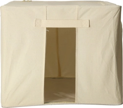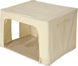 Tento krémový textilní organizér je ideální pro péřové přikrývky, polštáře, deky, ručníky i sezónní oblečení. Díky přednímu zipovému otvoru pohodlně vyjmete věci i ze spodních polic bez nutnosti box přemisťovat. Průhledná přední stěna vám umožní ihned vidět, co je uvnitř.