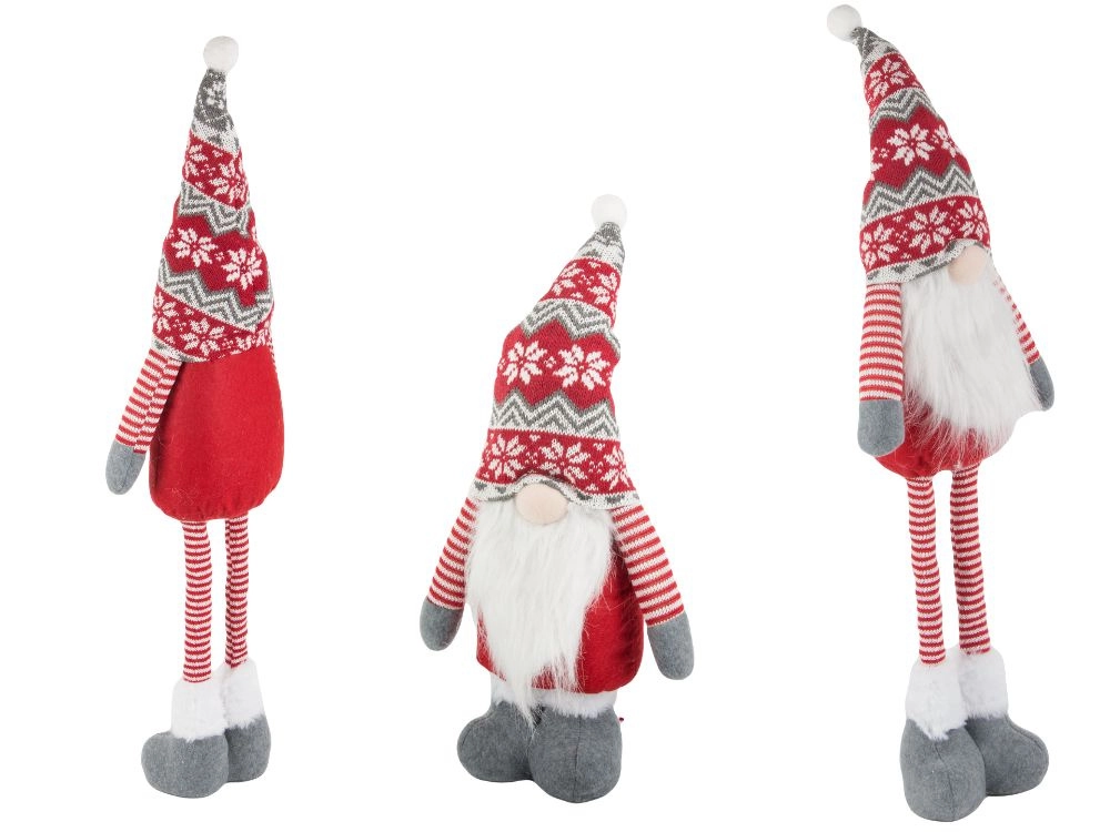 Stylový skandinávský skřítek v červených tónech s dlouhým pleteným kloboukem, hebkým bílým vousem a pruhovanými rukávy je ideální dekorací pro zimní období. Nastavitelná výška 50–70 cm vám umožní přizpůsobit figurku místu, kde bude nejlépe vynikat – od parapetu po krbovou římsu.