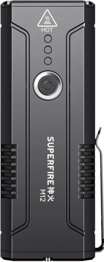 Svítilna Superfire M12 je vybavena šesti světelnými režimy pro různé podmínky. Nabízí slabé, střední a silné osvětlení, spolu s režimy Strobe a SOS, které jsou nezbytné v nouzových situacích. Pomocí turbo funkce, která je dostupná dvojitým kliknutím, můžete dosáhnout plného výkonu 8 000 lumenů.