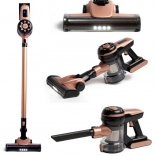 Součástí balení jsou různé typy nástavců, jako je elektrokartáč, 2v1 kartáč na čalounění a dlouhý nástavec na štěrbiny, což umožňuje efektivní čištění různých povrchů od koberců po tvrdé podlahy.