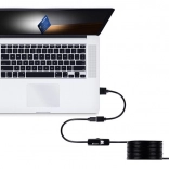 Zdarma dodávaný software umožňuje zobrazovat a nahrávat záběry z počítače, tabletu i smartphonu díky USB portu. Součástí balení je adaptér z microUSB na USB.