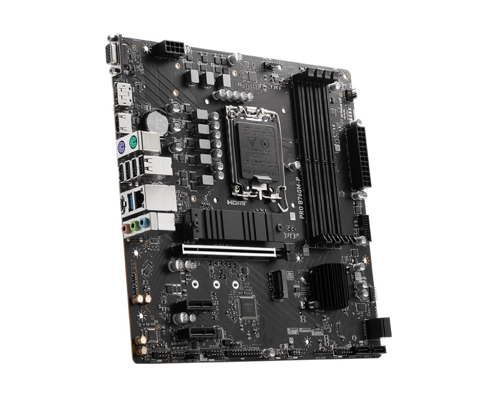 MSI PRO B760M‑P je spolehlivá microATX základní deska pro socket LGA1700, která podporuje procesory Intel Core 12. a 13. generace a rychlou paměť DDR5. Nabízí PCIe 4.0, dvojici M.2 Gen4 slotů, moderní obrazové výstupy HDMI a DisplayPort a technologie Core Boost a Memory Boost pro maximální výkon a stabilitu.