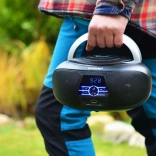 Díky madlu a napájení 4× R20 si vezmete boombox kamkoli – do parku, na terasu nebo na výlet bez zásuvky.