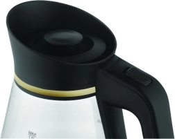 Stylová a výkonná konvice PRIME3 spojuje elegantní čiré tělo z borosilikátového skla s černo-zlatými prvky, takže skvěle zapadne do moderní kuchyně. Objem 1,5 l s minimálním naplněním 0,5 l umožňuje rychle ohřát přesné množství vody a šetřit tak čas i energii. Viditelný ukazatel hladiny vody usnadňuje kontrolu a přesné dávkování.