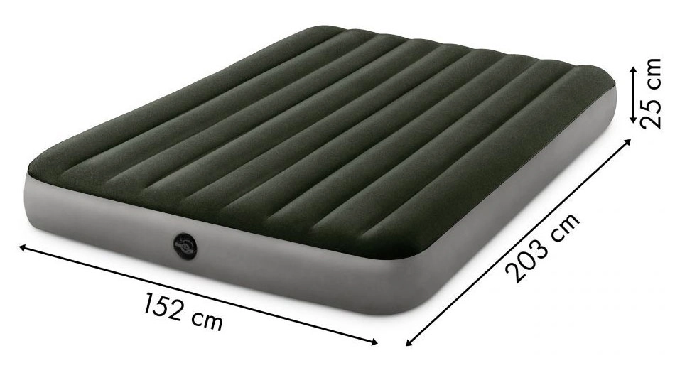 Nafukovací dvoulůžková matrace INTEX je ideální volbou pro hosty, kempování i každodenní relax. Kombinuje odolné PVC s měkkým, na dotek příjemným velurovým povrchem, který je navíc voděodolný a snadno se udržuje. Rozměry 203 × 152 × 25 cm nabízejí dostatek prostoru pro pohodlný spánek dvou osob.