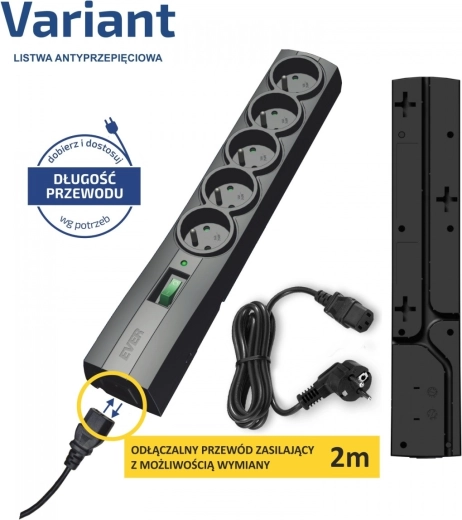 Hledáte bezpečné a flexibilní napájení pro domácnost nebo kancelář? Přepěťová lišta EVER VARIANT poskytuje účinnou ochranu citlivé elektroniky a současně komfortní ovládání. Díky konektoru IEC 320 C14 snadno zvolíte délku přívodního kabelu podle potřeby, zatímco standardně dodávaný 2m odpojitelný kabel zajistí okamžité použití.