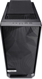 Přední panel s asymetrickým mřížkovým vzorem nejen dodává skříni unikátní vzhled, ale zajišťuje také efektivní chlazení komponentů.