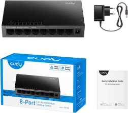 Oceníte také úsporný provoz – switch automaticky snižuje spotřebu energie u neaktivních portů. Pro flexibilní instalaci nechybí připravené otvory pro nástěnnou montáž, takže zařízení snadno umístíte mimo pracovní plochu.