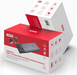 Dvojitý, vysoce kvalitní čipset s podporou UASP umožňuje efektivní zpracování příkazů a až o desítky procent vyšší rychlosti oproti běžnému USB. Podpora TRIM pomáhá udržet konzistentní výkon a delší životnost vašich NVMe disků. Hliníkové šasi s integrovaným ventilátorem a přiložené teplovodivé podložky zaručují stabilní teploty i při dlouhých přenosech. Mechanismus Secure‑Lock chrání proti náhodnému otevření a umožňuje rychlou výměnu disků bez nářadí.