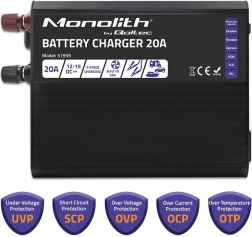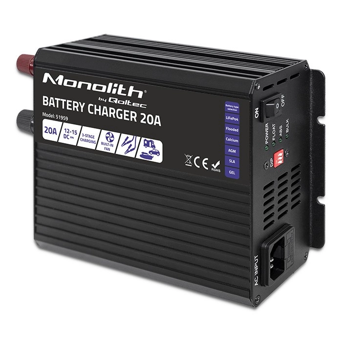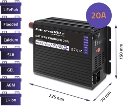 Nabíječka MONOLITH 12 V / 20 A byla navržena pro rychlé, bezpečné a šetrné dobíjení startovacích i trakčních akumulátorů. 3stupňový algoritmus BULK – ABS/BOOST – FLOAT automaticky přizpůsobí napětí a proud stavu baterie, zkracuje čas nabíjení a prodlužuje její životnost. LED kontrolky přehledně ukazují aktuální fázi.