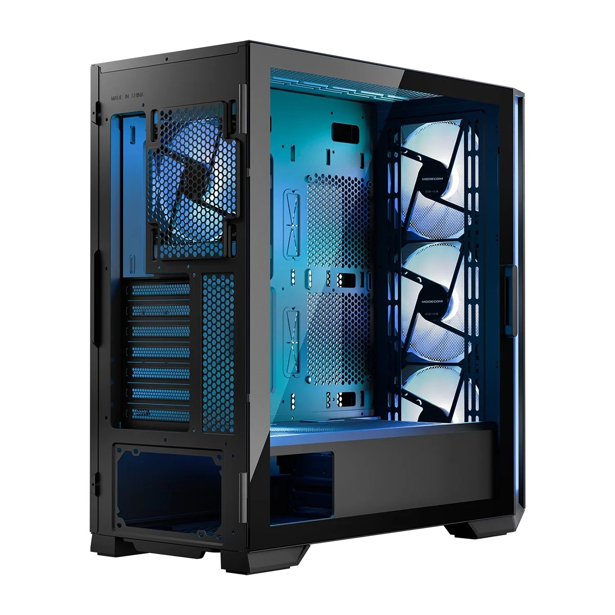 Objevte skříň MODECOM Horizon, která splňuje veškeré požadavky na solidní a funkční počítačovou skříň. Přední panel obsahuje tři 140mm ARGB ventilátory pro efektivní nasávání vzduchu, zatímco zadní 120mm ARGB ventilátor se stará o odvod horkého vzduchu.