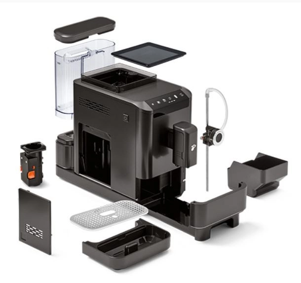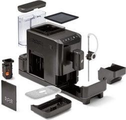Díky velkému zásobníku na zrna o objemu 300 g a nádrži na vodu 1,4 l (vyjímatelné z více stran) si vychutnáte více kávy s méně častým doplňováním. Integrovaný nerezový kuželový mlýnek optimalizuje mletí pro směsi Tchibo – ideální souhra mletí, teploty, tlaku i množství vody pro perfektní výsledek v šálku.