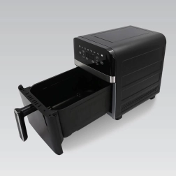 Intuitivní elektronický panel nabízí 8 předvolených programů (hranolky, kuřecí křidélka, ryby, steak, krevety, pizza, houby, toasty). Nastavte si přesně teplotu 60–200 °C i čas 1–90 minut a přizpůsobte přípravu podle svých potřeb. Nepřilnavý koš ulehčí údržbu a přiložený grilovací rošt se silikonovými nožkami zajistí stabilitu i rozmanitost přípravy.