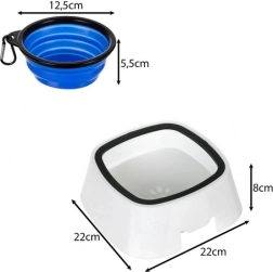 Miska je lehká, snadno přenosná a rychle se skládá pro okamžité použití. Díky kapacitě 1500 ml se hodí pro psy všech velikostí. Součástí balení je i praktická skládací miska o objemu 350 ml, ideální pro cesty nebo outdoorové aktivity.