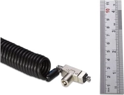 Robustní karbon-ocelové lanko s ochranným pláštěm se rozvine pro flexibilní uzamčení a po použití se stáhne na kompaktní rozměr pro snadné přenášení.