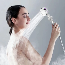 Vychutnejte si sprchu s vyšším tlakem a nižší spotřebou vody díky úsporné 360° rotační sprchové hlavici s ventilátorem. Praktické tlačítko Stop, jemný a rovnoměrný proud i moderní kovový vzhled pro každou koupelnu.
