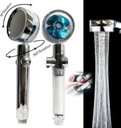 Tato sprchová hlavice kombinuje vestavěný ventilátor a rotační mechanismus 360° pro intenzivnější proud, který šetří vodu i energii. Transparentní komora s turbínou zajišťuje jemné rozprašování a příjemnou masáž pokožky.