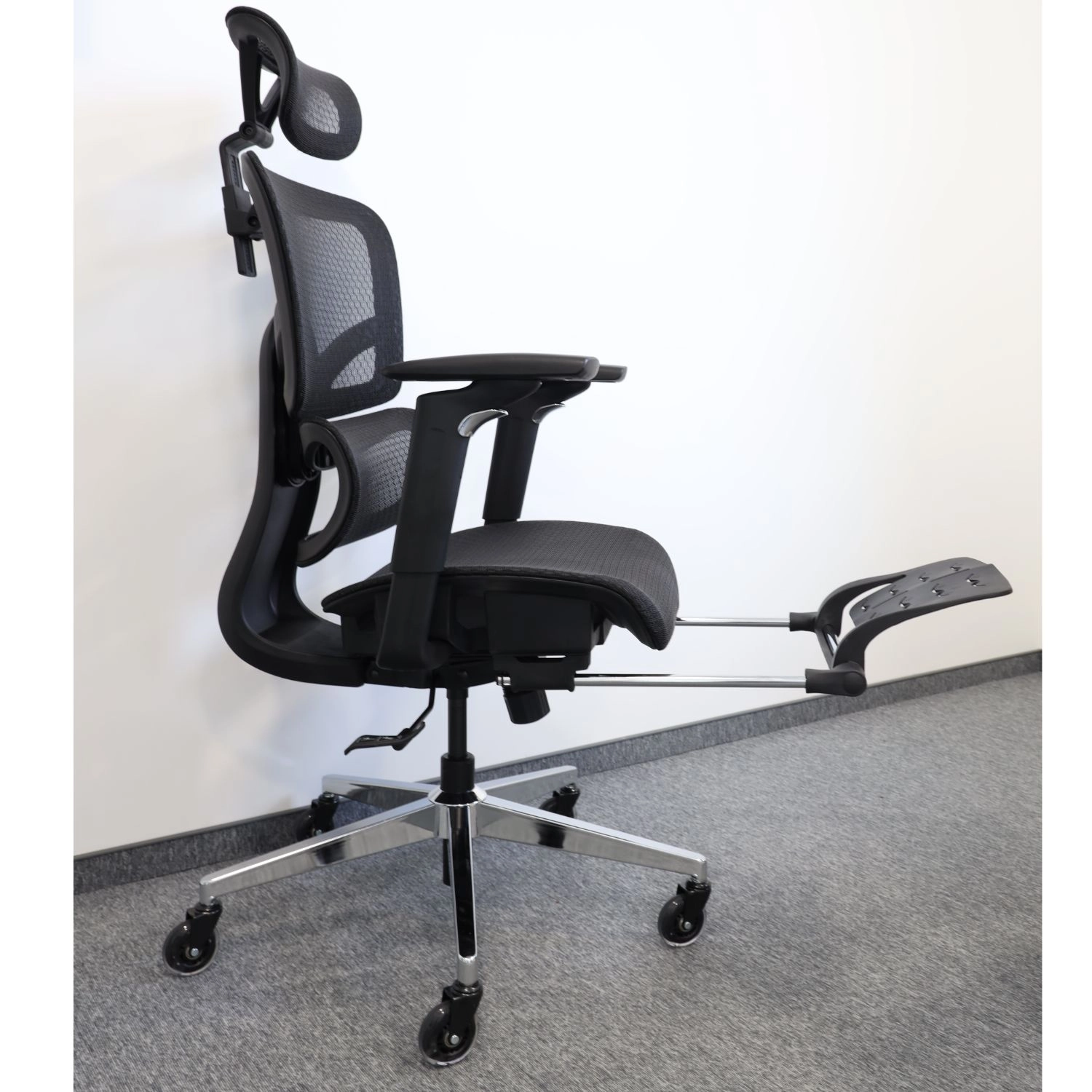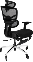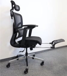 Díky 4úrovňovému zámku náklonu (až 135°) snadno přepnete z pracovního do relaxačního režimu. Výsuvná 20cm podnožka uleví nohám během přestávek a výškově nastavitelné područky (27,5–35,5 cm) uleví ramenům. Robustní konstrukce z plastu, síťoviny, pěny a pochromované základny stojí pevně na kolečkách a unese až 136 kg.
