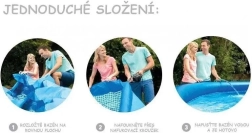 - Snadná montáž – nafouknout prstenec, napustit vodu, hotovo.
