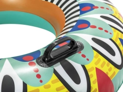 Kruh na plavání Fiesta přináší zpět do bazénu styl a radost díky své živé grafice a pestrým barvám. S průměrem 107 cm a dvěma černými rukojeťmi pro snadné uchopení zaručuje bezpečnost pro děti od 12 let i dospělé. Integrovaný bezpečnostní ventil umožňuje snadné nafukování a vypouštění, takže skladování je hračka.