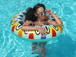 Přidejte zábavu a styl do svého bazénu s kruhem na plavání Bestway Flirty Fiesta, který zaujme svým živým vzorem a odvážnými barvami.