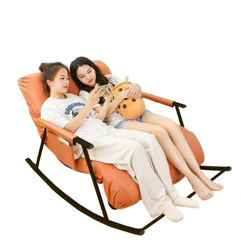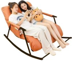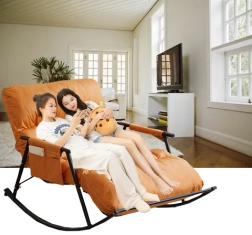 Toto moderní dvojité houpací křeslo propojuje pohodlí a nadčasový design. Široké sedadlo s měkkou výplní z PP bavlny, čalouněné opěrky a stabilní ocelový rám zaručují komfortní posezení pro dva – na čtení, sledování TV i relax po náročném dni.