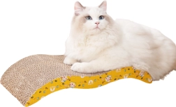 Toto kartonové škrábací lehátko s vlnovým profilem dokonale naplňuje přirozené potřeby koček – poskytuje odolnou škrábací plochu a zároveň pohodlné lehátko pro lenošení. Přírodní karton skvěle láká ke škrábání, snižuje stres a udržuje drápky ve formě, zatímco hravý žlutý potisk potěší oko majitele.