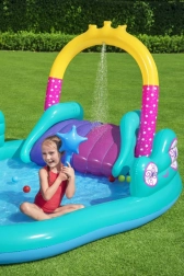 Součástí balení jsou i zábavné doplňky – 6 míčků, a kouzelná hůlka, se kterými si děti vytvoří vlastní herní scénáře. Praktický vypouštěcí ventil usnadňuje údržbu a sbalení po koupání.