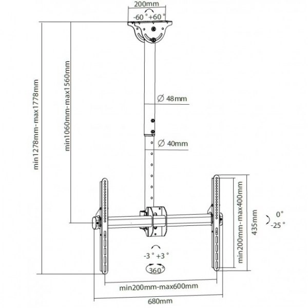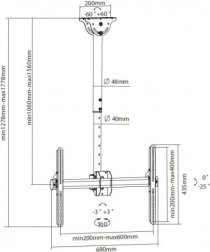 Spolehlivý stropní držák pro televizory a displeje o úhlopříčce 37–70" vám umožní ušetřit místo a dosáhnout ideálního úhlu sledování. Díky pevné ocelové konstrukci a podpoře standardu VESA nabízí bezpečnou a univerzální instalaci v domácnosti, kanceláři i v komerčních prostorech.