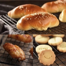 Zvýšené nožky a hustá síť zajišťují, že pečivo chladne rovnoměrně ze všech stran bez kondenzace a rozmáčení.