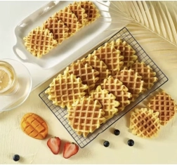 Díky husté mřížce je ideální také na polévání polevami, čokoládou a glazurami – přebytek může volně stékat, zatímco dezerty zůstávají stabilní. Mřížka zároveň chrání pracovní desku před horkem a usnadňuje čistou a přesnou práci při zdobení.