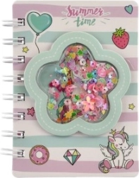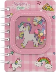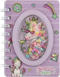 Obálka s průhledným okénkem plným konfet a hvězdiček zaujme na první pohled a dodá zápisníku jedinečný vzhled, který si zamilují děti i dospělí.