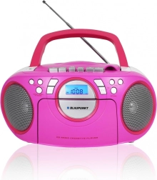 - Přenosný boombox s CD/MP3, USB, AUX a kazetovým přehrávačem