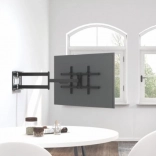 Držák nabízí širokou škálu nastavení, včetně náklonu od +5° do -15°, otáčení o ±90° i úpravy vzdálenosti od stěny mezi 82 a 1015 mm. Kompatibilita se standardy VESA od 200x200 mm až po 800x400 mm zajišťuje jeho použití s většinou dostupných modelů televizorů.