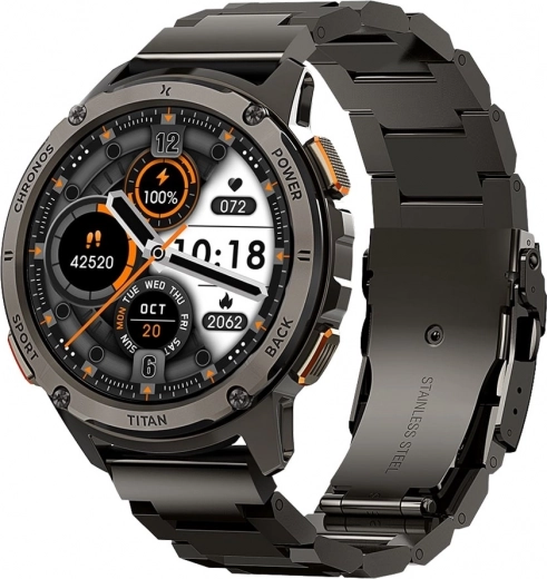 Hledáte chytré hodinky, na které je spoleh? MAXCOM Titan Chronos staví na robustním kovovém zpracování a čistém, sportovním vzhledu. Kulatý displej s kontrastními oranžovými akcenty zajišťuje výbornou čitelnost a máte stále po ruce klíčové informace o pohybu i zdraví.