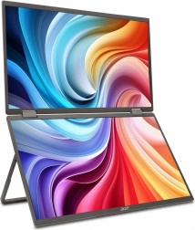 Zvyšte svou produktivitu kdekoli s elegantním duálním 16'' monitorem od značky ACER. Dvě obrazovky vedle sebe, široká konektivita 2× USB‑C a HDMI, stabilní skládací stojan a tenké, lehké provedení z něj dělají ideální řešení pro práci na cestách, multitasking i prezentace.