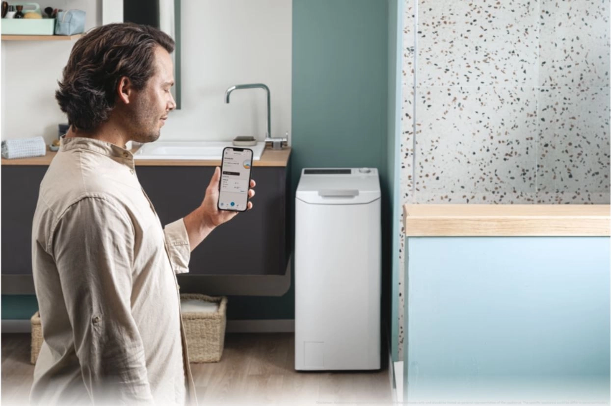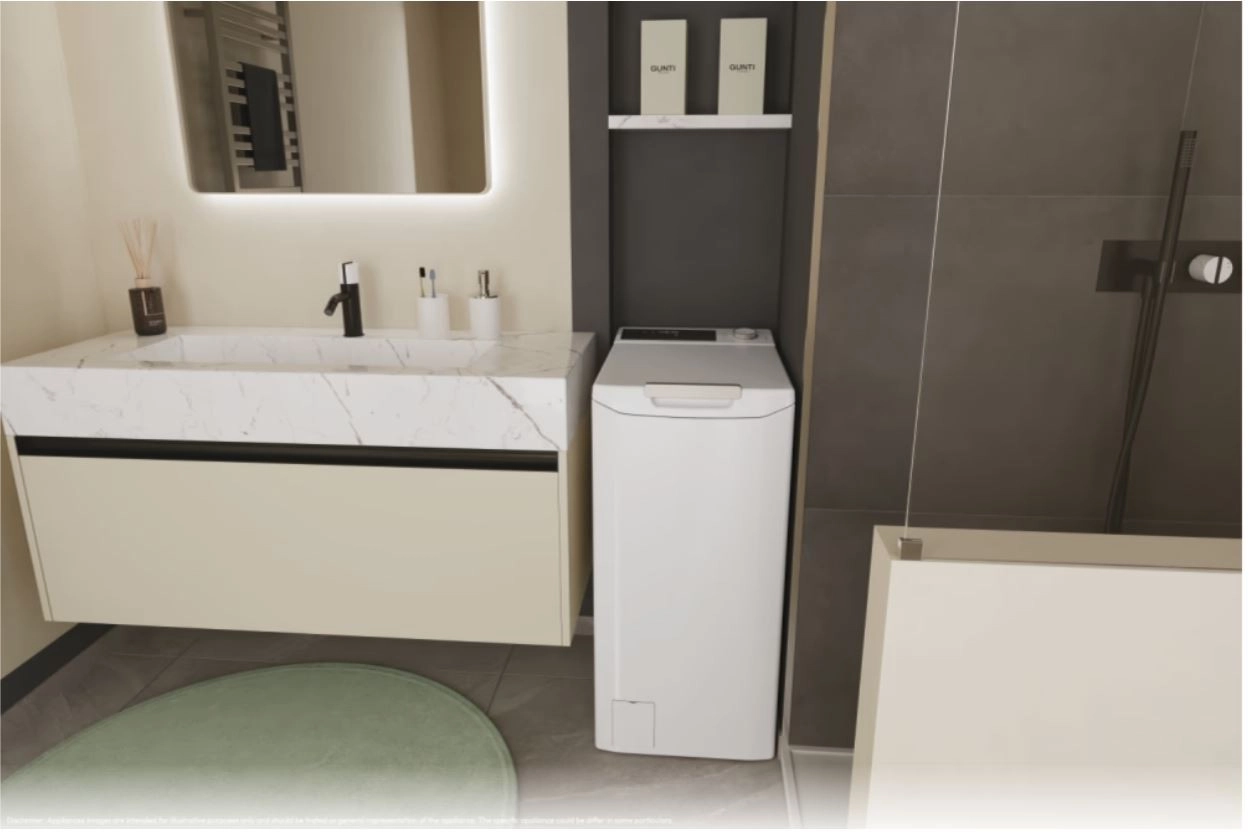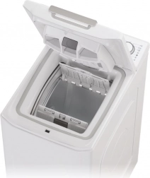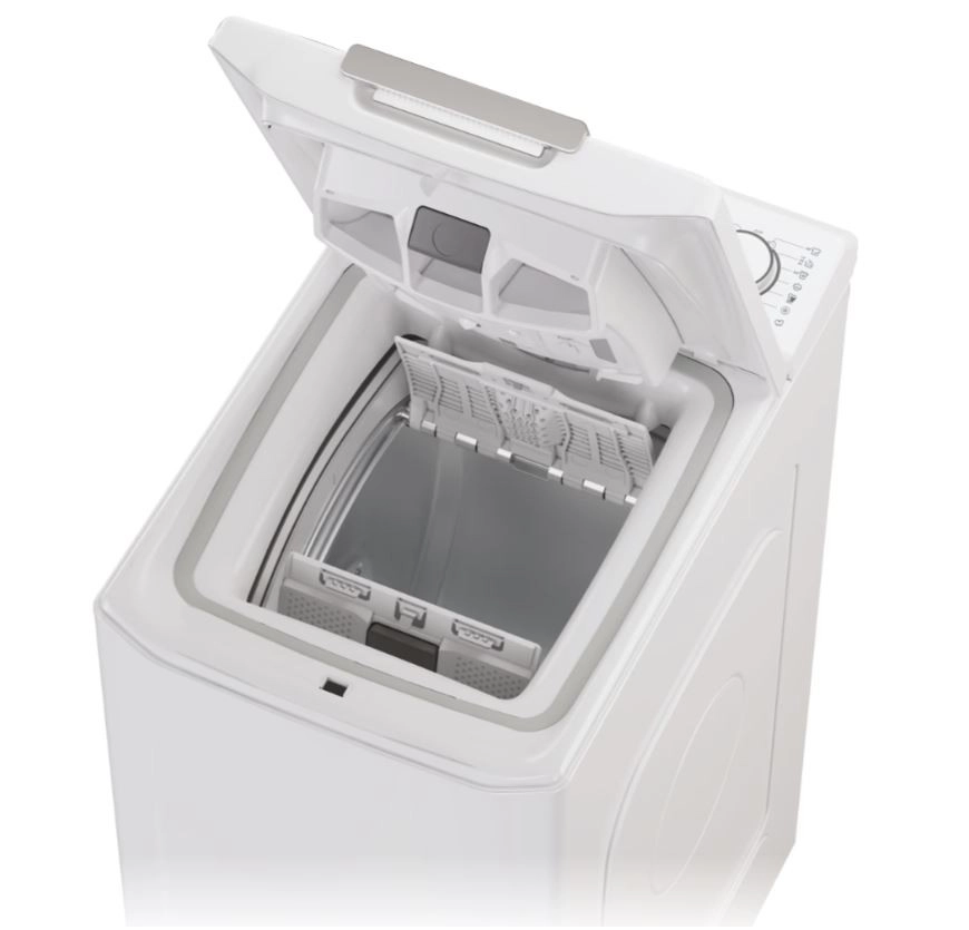 Tato moderní pračka s horním plněním kombinuje úsporné rozměry s vysokou účinností praní. Díky konstrukci shora je vkládání a vyjímání prádla mimořádně pohodlné a šetří místo v interiéru. Ovládací panel s přehledným voličem a tlačítky usnadňuje volbu programu i nastavení teploty a otáček.