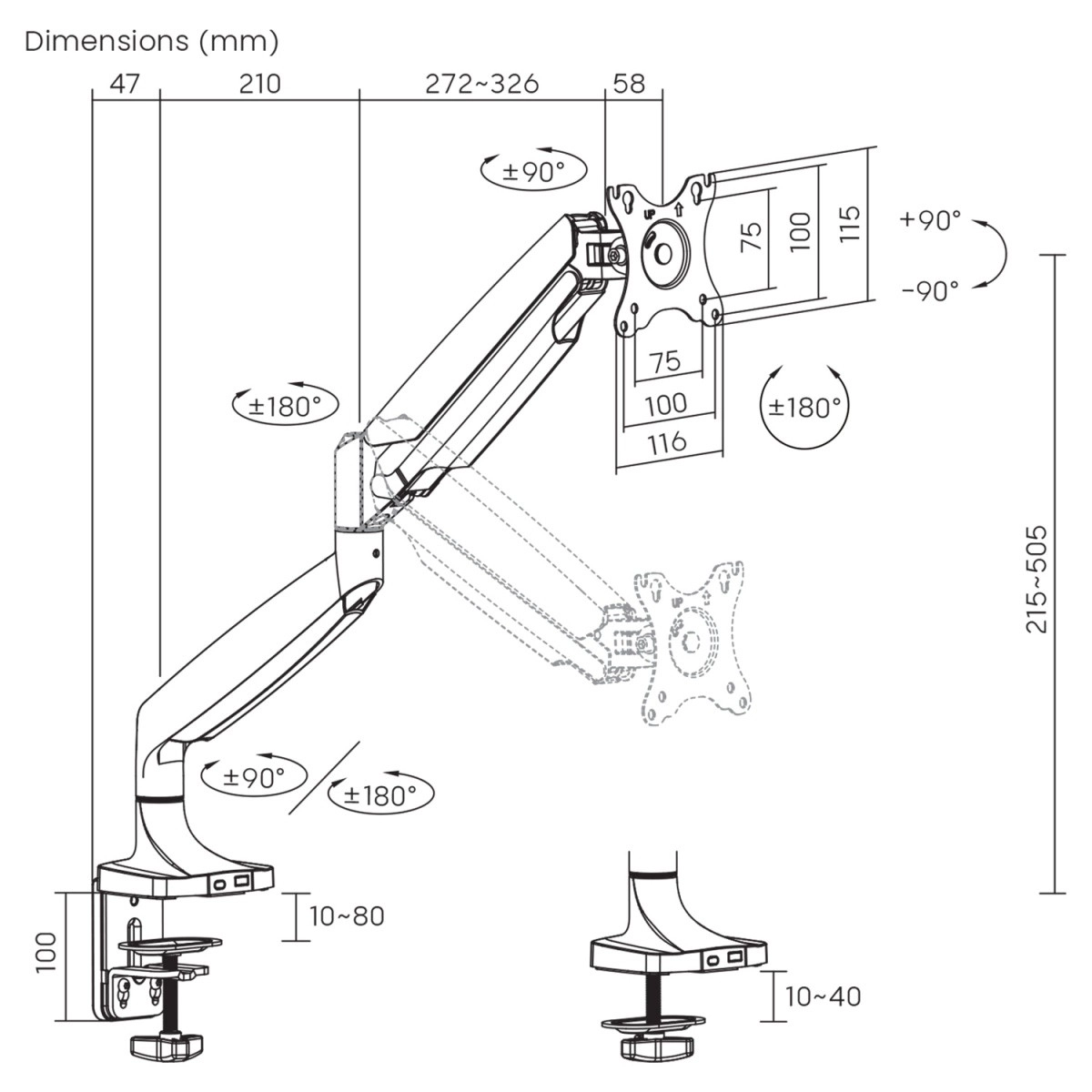 Univerzální držák na monitor s dvojitým ramenem a plynovou pružinou pro obrazovky 17–45" do 16 kg. Nabízí přesné nastavení výšky, náklonu a otočení, kompatibilitu s VESA 75x75 a 100x100 a montáž ke hraně stolu nebo do průchodky. Ideální pro ergonomické, přehledné a moderní pracovní místo.