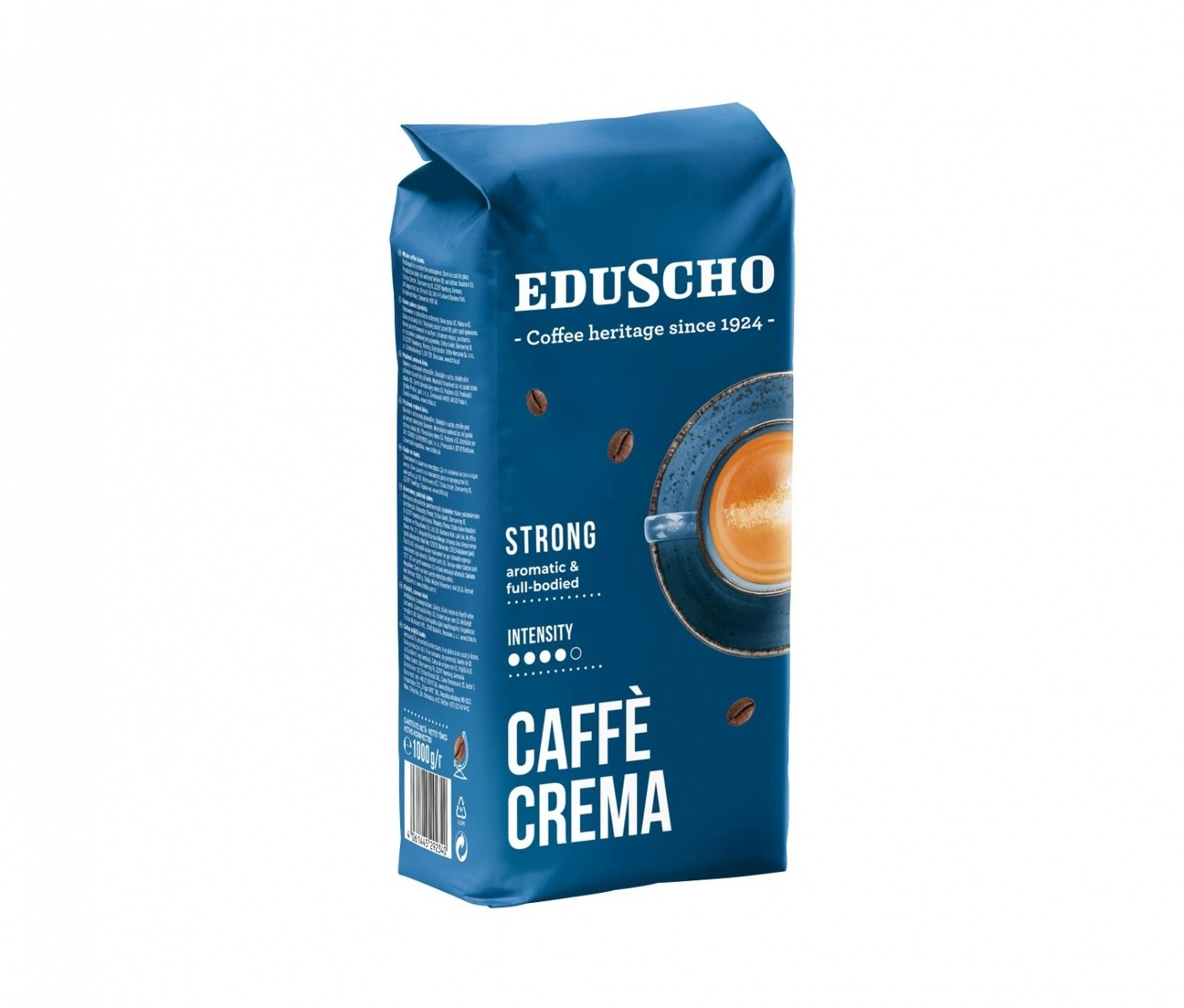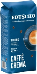 EDUSCHO Caffè Crema Strong je pečlivě vyvážená směs zrn z Jižní Ameriky a jižní Asie. Kombinace 35 % arabiky a 65 % robusty přináší plné tělo, hutnou cremu a výraznou chuť s jemnými tóny ořechů a hořké čokolády. Střední stupeň pražení podtrhuje charakter jednotlivých odrůd a zajišťuje harmonický, dlouhý dozvuk.