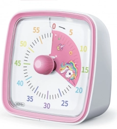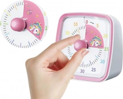 Tato bílo‑růžová minutka s roztomilým jednorožcem kombinuje praktické odměřování času se zábavným vzhledem, který skvěle zapadne do dětského pokoje, kuchyně nebo studovny. Otočné pokroutko umožňuje rychlé nastavení až na 60 minut, zatímco zvukový alarm a světlo upozorní na konec odpočtu.