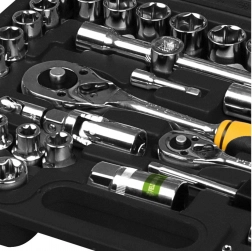 Tato 108dílná sada kombinuje nejpoužívanější nástrčné hlavice, bity a příslušenství, takže snadno zvládnete montážní i údržbové práce na automobilu, kole či v domácnosti. Přehledné uspořádání v pevném kufru zajišťuje rychlou orientaci a bezpečné uložení.