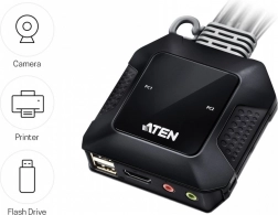 Přepínač KVM s 2 porty USB a 4K HDMI je navržen pro efektivní ovládání dvou počítačů z jediné pracovní stanice. Nabízí: