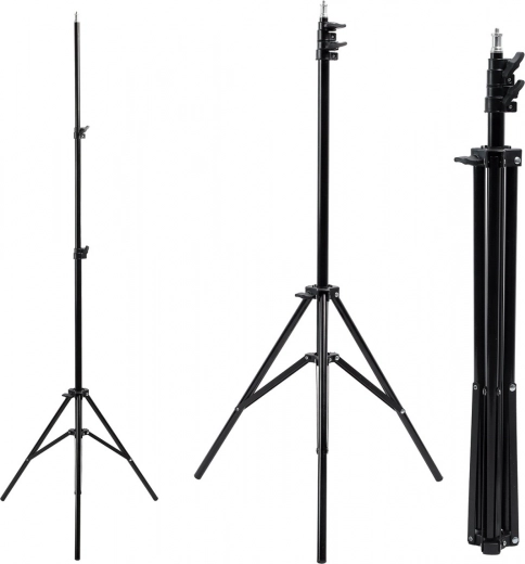 Stativ je kompatibilní s oblíbenými 12" modely, jako jsou Maclean Energy MCE612 a MCE612B. Třínohá základna zajišťuje pevnou stabilitu, zatímco nastavitelná výška a aretační zámky umožňují přesné nastavení osvětlení pro portréty, produktové snímky i make-up.