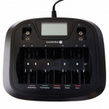 Velký LCD displej doplněný o LED indikátory jasně zobrazuje režimy jako přednabíjení, nabíjení, připraveno či chybový stav. Konstrukce je navržena tak, aby podporovala AA/AAA nebo alternativně C/D články a zároveň 2 samostatné kanály pro 9V (6F22). Díky tomu bez problémů nabijete i jednotlivé kusy nebo netypické kombinace baterií.