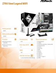 ASRock Z790 Steel Legend WiFi je výkonná základní deska navržena pro náročné hráče a profesionály. Podporuje nejnovější Intel Core 13. a 12. generaci, nabízí pokročilé možnosti chlazení a rozšíření pomocí M.2 slotů a SSD.