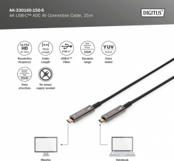 Zajišťuje bezztrátový přenos video a audio signálů v rozlišení UHD 4K s přenosovou kapacitou až 21,6 Gbps. Ideální pro přenos obrazu a zvuku na dlouhé vzdálenosti díky hybridní konstrukci kombinující měděné a optické kabely.