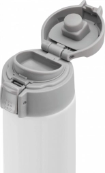 Praktické víčko na tlačítko s pojistkou je 100% těsnící, takže nehrozí žádné nechtěné rozlití v tašce. Víčko lze pro důkladné čištění kompletně rozebrat a celý hrnek je vhodný do myčky. Tělo z nerezové oceli 18/10 je odolné vůči korozi a pachům, použité plasty jsou bez BPA a silikonové těsnění zajišťuje dlouhodobou spolehlivost.